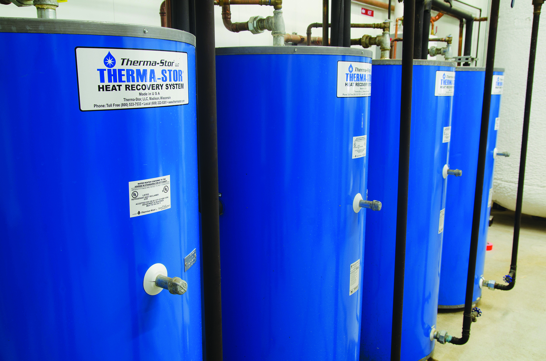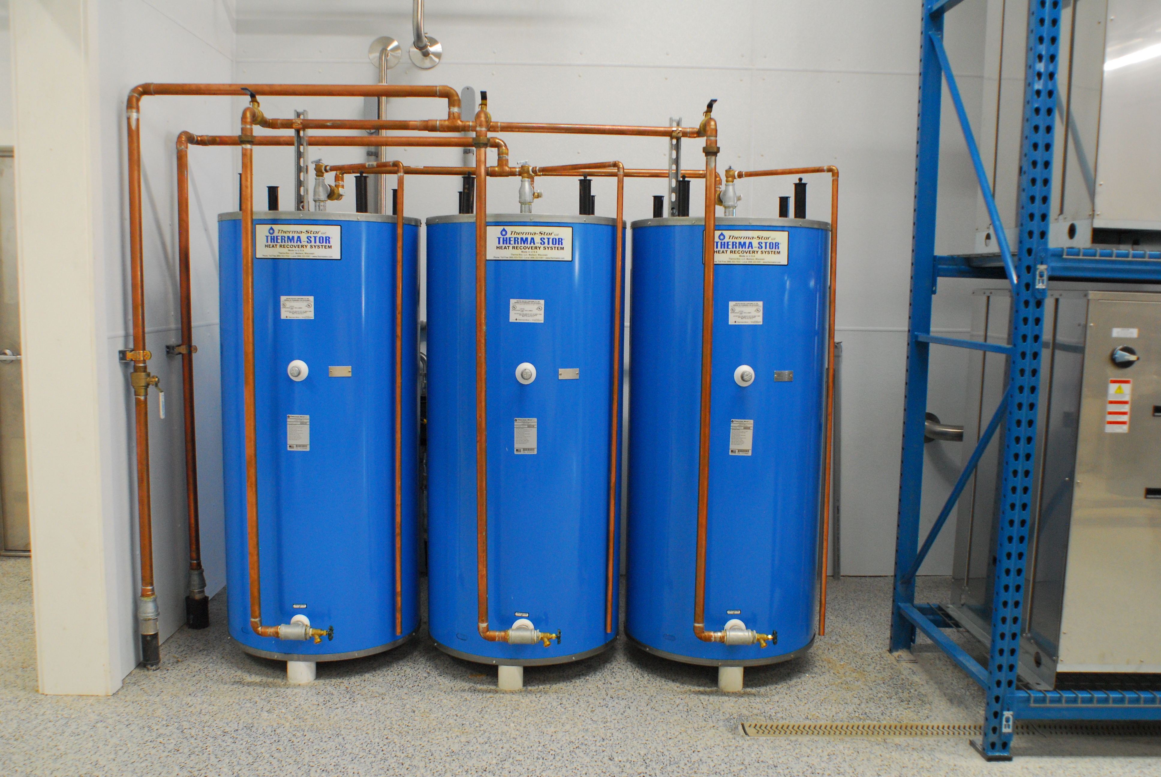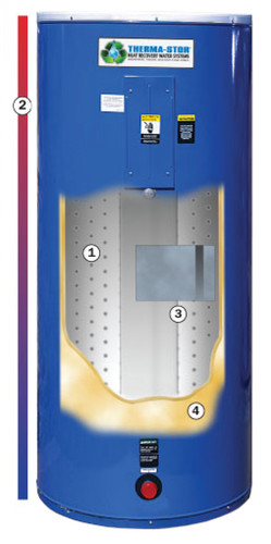Το σύστημα ανάκτησης θερμότητας Opti-Stor περιλαμβάνει μια βιομηχανική δεξαμενή αποθήκευσης νερού με υψηλής ποιότητας και ανθεκτική επένδυση από γυαλί, για να αντιστέκεται στη διάβρωση και έχει αντικαταστάσιμες ανόδους για επιπλέον προστασία από τη διάβρωση.