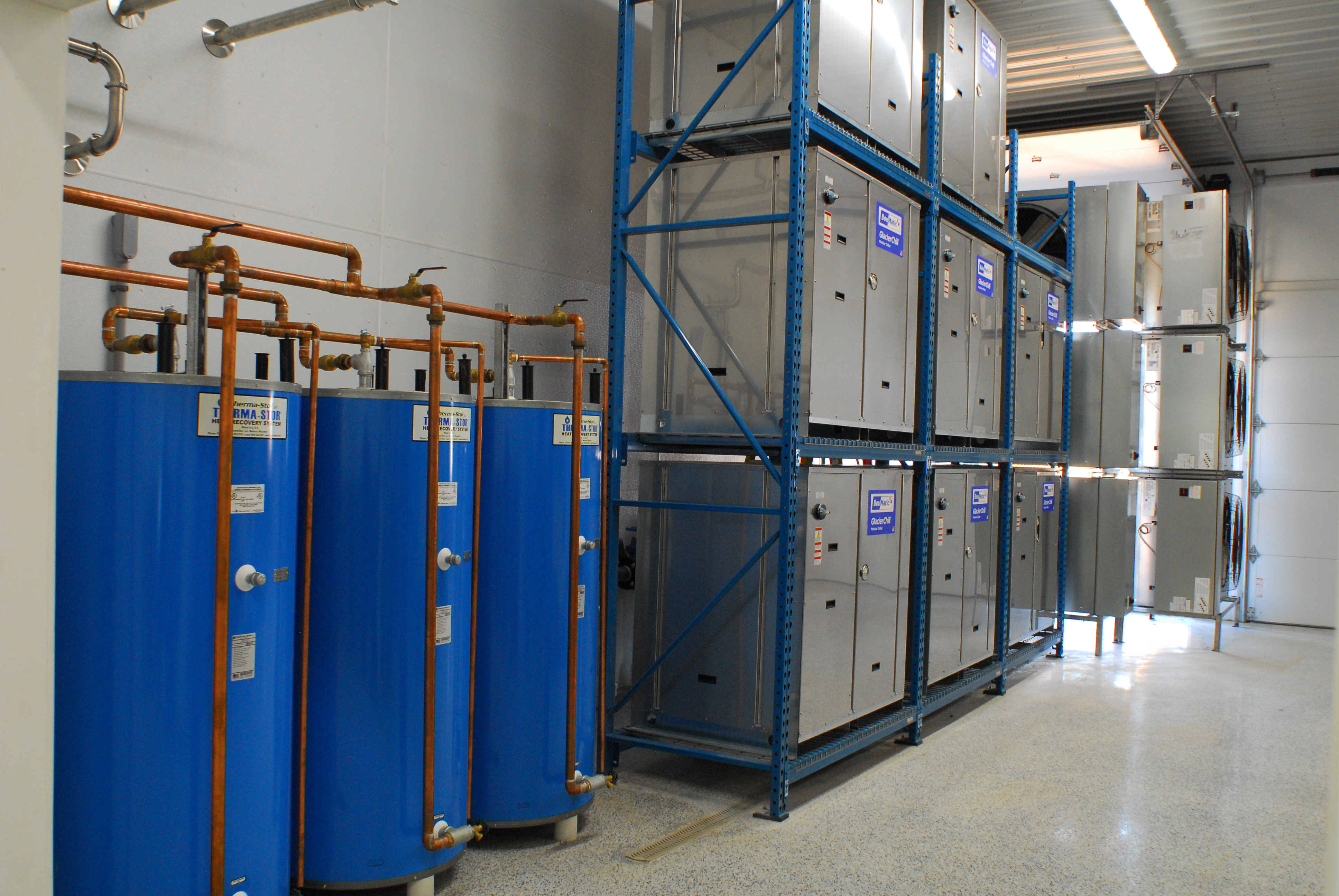 Το σύστημα ανάκτησης θερμότητας Opti-Stor, είναι ένα σύστημα παροχής ζεστού νερού στη κτηνοτροφική μονάδα. Συγκεντρώνει την απορριπτέα θερμική ενέργεια από το σύστημα ψύξης των παγολεκανών για να θερμάνει το νερό χωρίς περαιτέρω κατανάλωση ηλεκτρικής ενέργειας και επιτρέπει στον συμπιεστή να λειτουργεί πιο αποτελεσματικά. Αποτελείται από έναν εναλλάκτη θερμότητας διπλού τοιχώματος που θερμαίνει το νερό και μια δεξαμενή για να το αποθηκεύει μέχρι να χρειαστεί. Το σύστημα ανάκτησης θερμότητας Opti-Stor αναγνωρίζεται ως ο καινοτόμος ηγέτης στην τεχνολογία ανάκτησης θερμότητας.