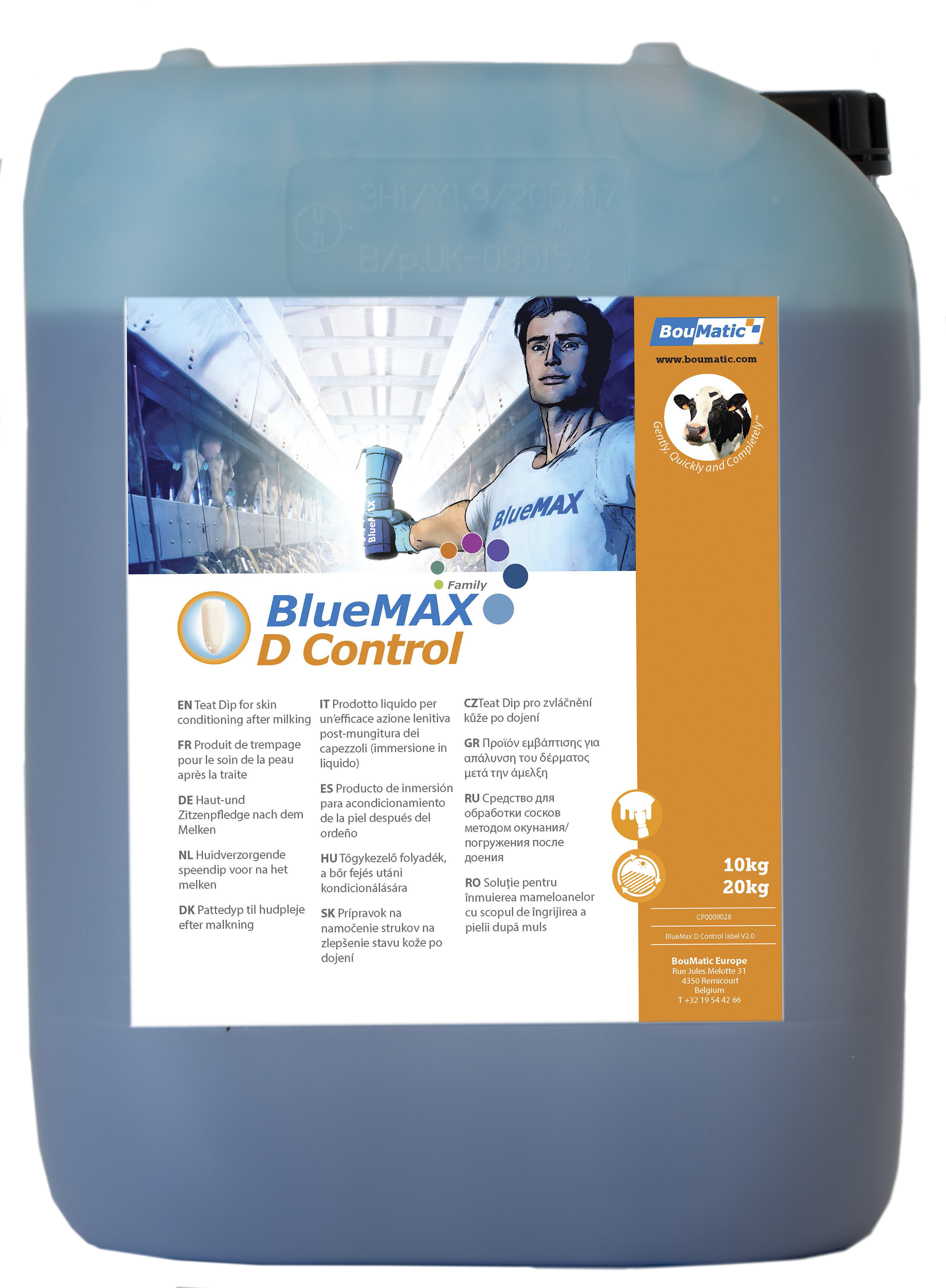 Το BlueMAX D Control, ένα έτοιμο προϊόν για χρήση μετά το άρμεγμα, είναι το απόλυτο προστατευτικό - ενυδατικό των θηλών. Το υγιές δέρμα των θηλών είναι η καλύτερη προστασία του ζώου για την μαστίτιδα και το BLueMAX D Control περιέχει 17% ενυδατικό για να παρέχει καλύτερη περιποίηση του δέρματος.
